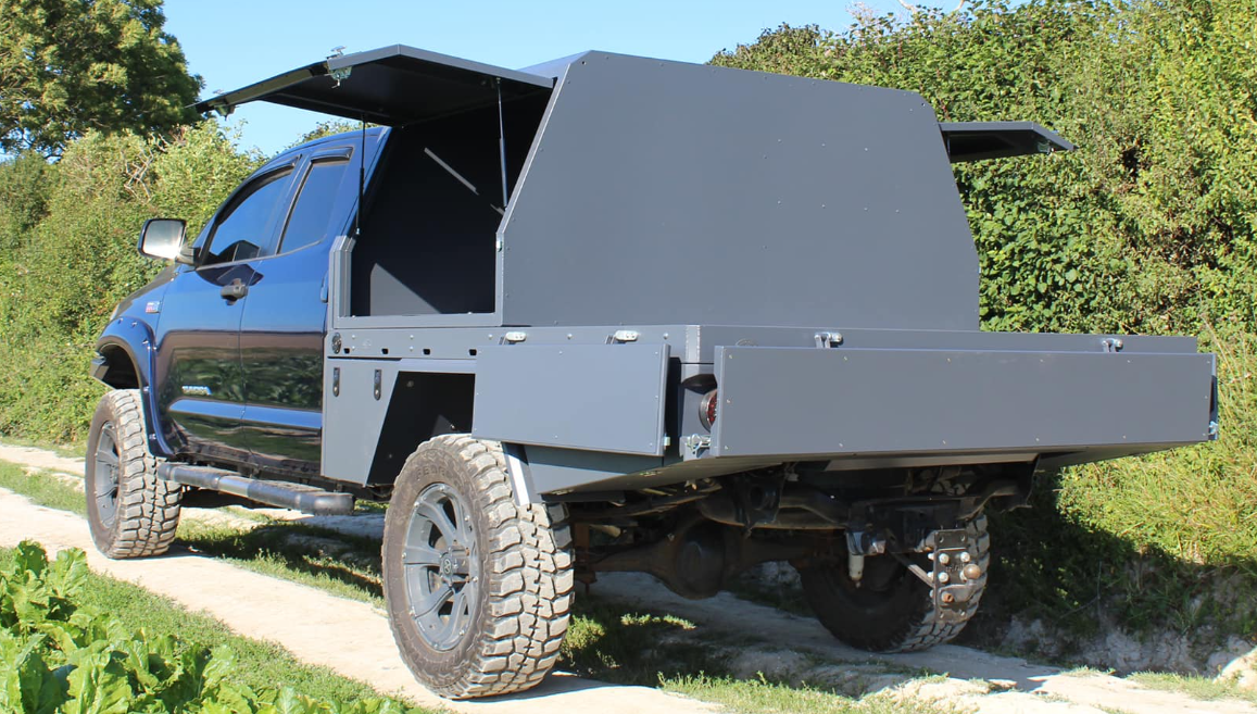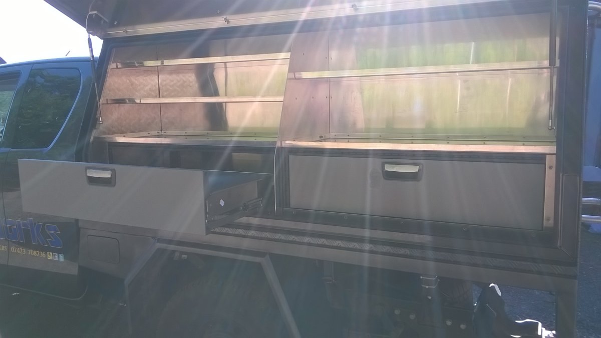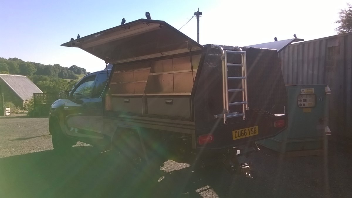 There are a couple of trucks floating round locally with a tray and two of these mounted on them. One has the gap between them covered over with a door. Another has it open so you can walk between them and a couple just have them one side.