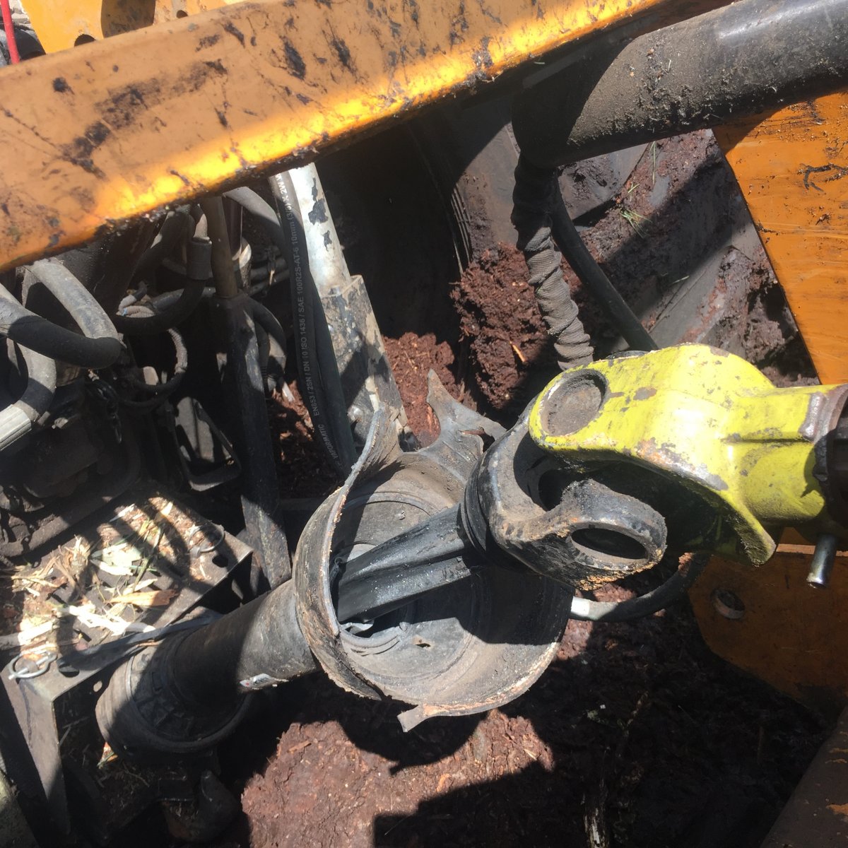 looks to have tipped over onto its side :unsure: could've been unloading rigging mats/pads, with the support vehicles that close to it