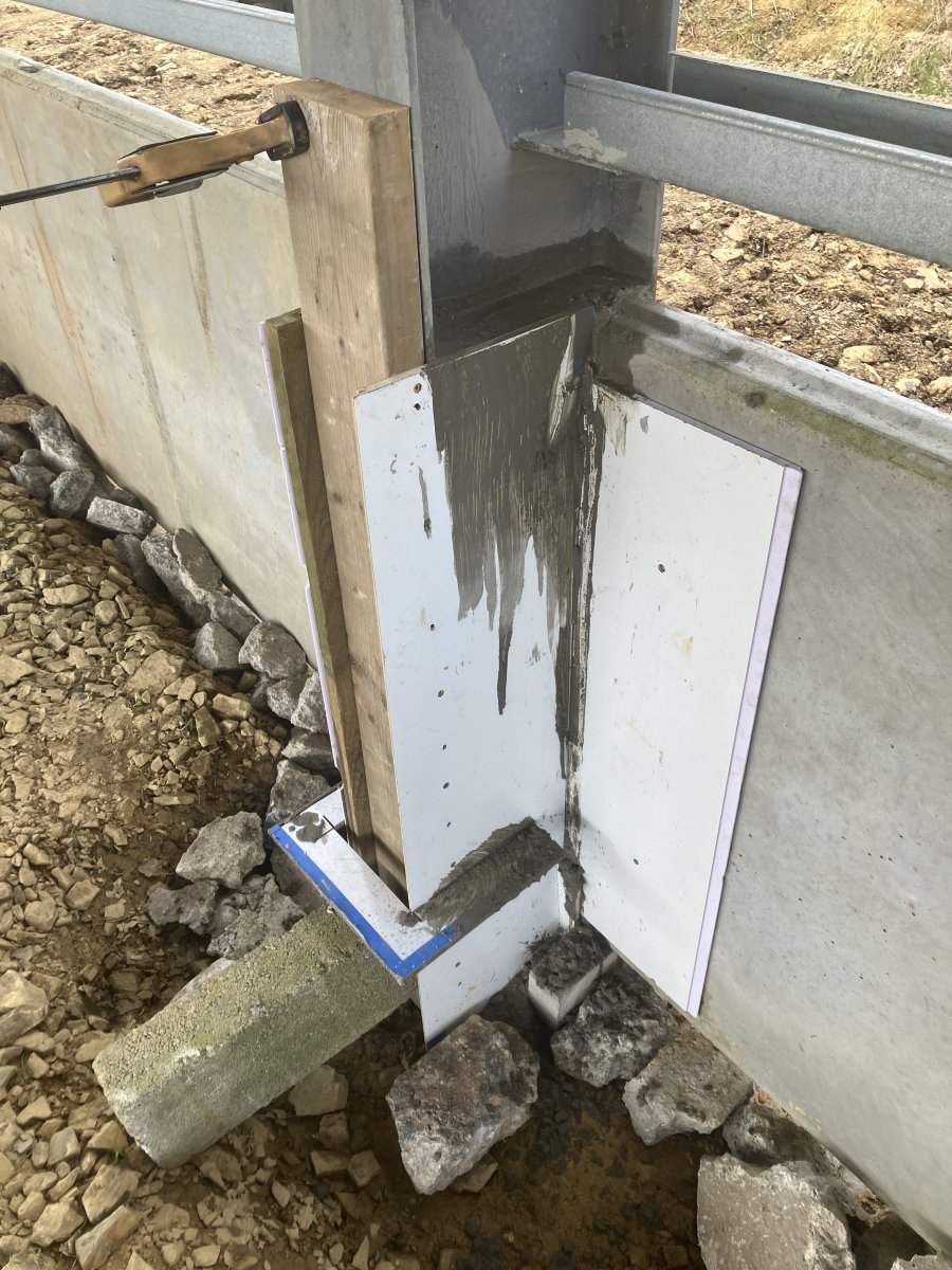 Productive Saturday afternoon. Got another 5 panels in on my own. Not impressed with the quality control. The fixing eyes are not positioned correctly or consistently and some are proud and some are pissed and one was stripped out. Won’t matter ultimately as I am going to cast them into the web for a good solid fix and to help keep the rodents out. It’s still annoying though. Will send a query email with photos to suppliers, and depending on their response may get the next lot from another supplier.