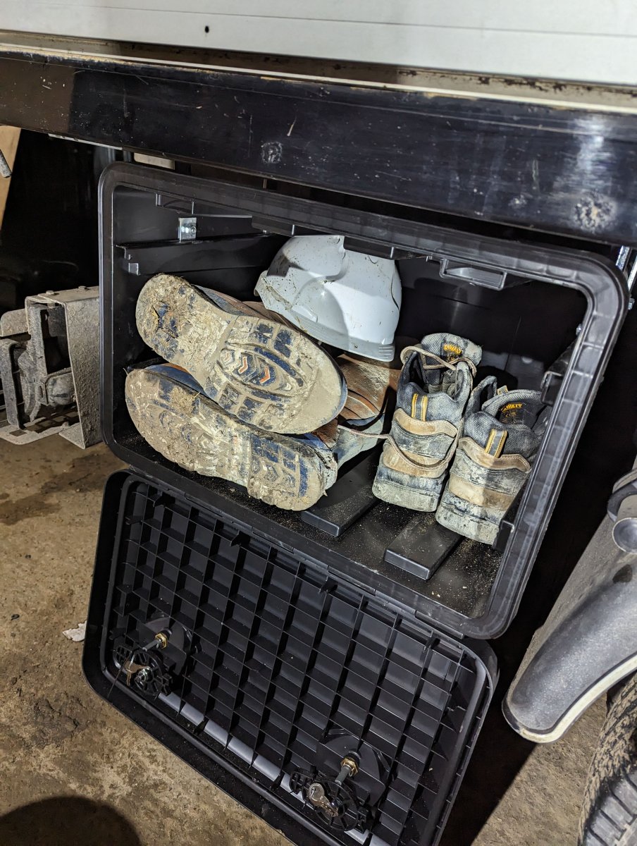 I've added these boxes for straps, boots etc. to keep them out of the cab