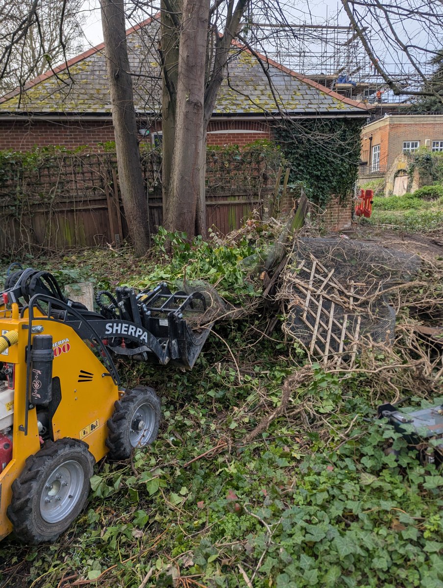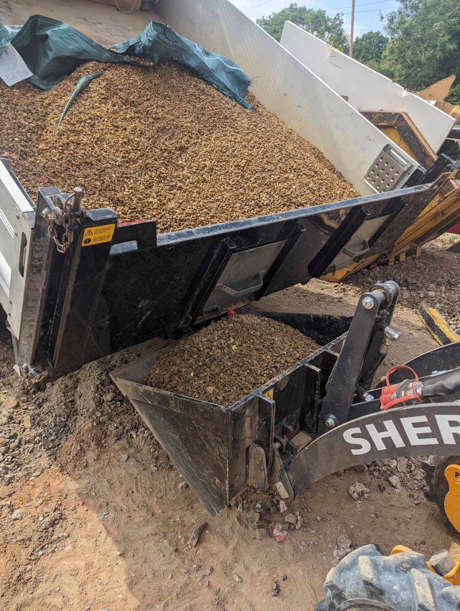 The Sherpa is an awesome tool. I didn’t have much work for it initially and it was painful watching the finance payments go out every month, but on certain jobs it is brilliant. It will run back and forward, tip aggregates right where you need them, grapple bucket is great for waste/greenery, forks really handy for loading the truck etc. etc.