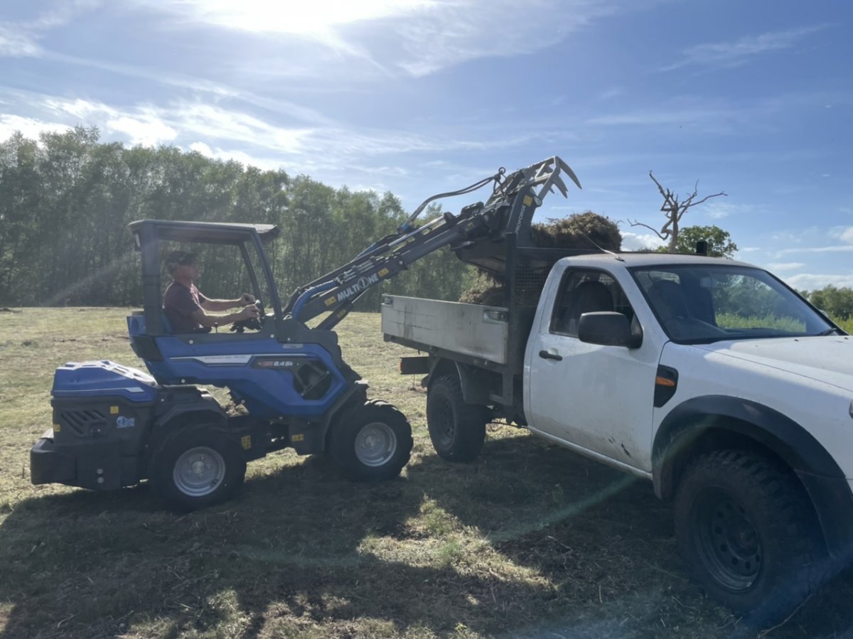 I left it in piles at regular intervals as you can see, and it took just twenty minutes to load it away with the Multione and Ranger tipper. Much faster and more comfortable on the way to the dump site, which was a fair distance. That's why people think these jobs take ages- they just don't think smart and instead spend ages trundling a microscopic amount to the dump site and back. If you didn't have the Multione on site then you could have a loader on the tractor instead- it would be a one-trip job, tipper and tractor/cutter/front loader.